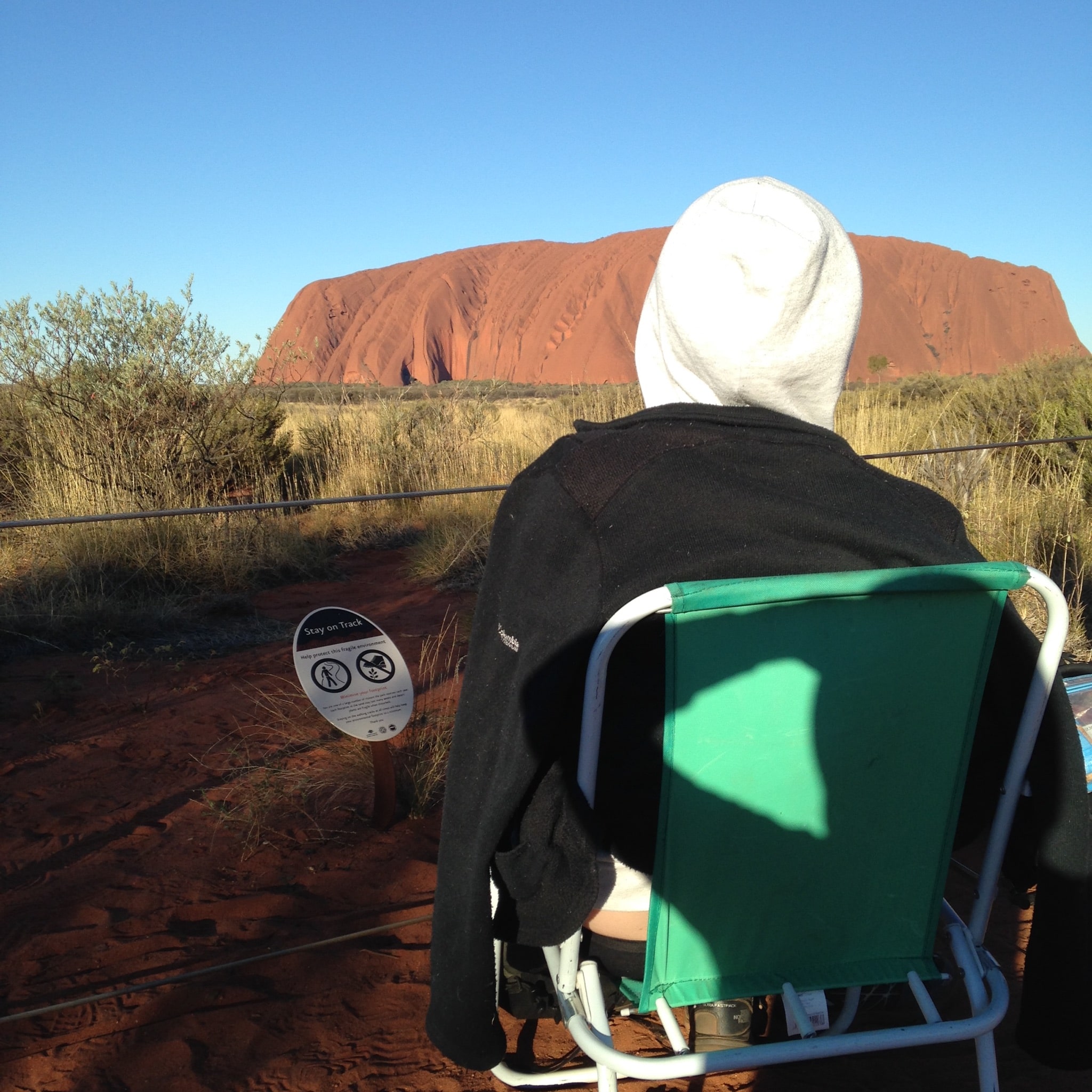 Mamie Clem attendant le coucher de soleil sur Uluru – Australie -Ayers Rock – Uluru Kata-Tjuta National Park – Désert Rouge – Juillet 2015