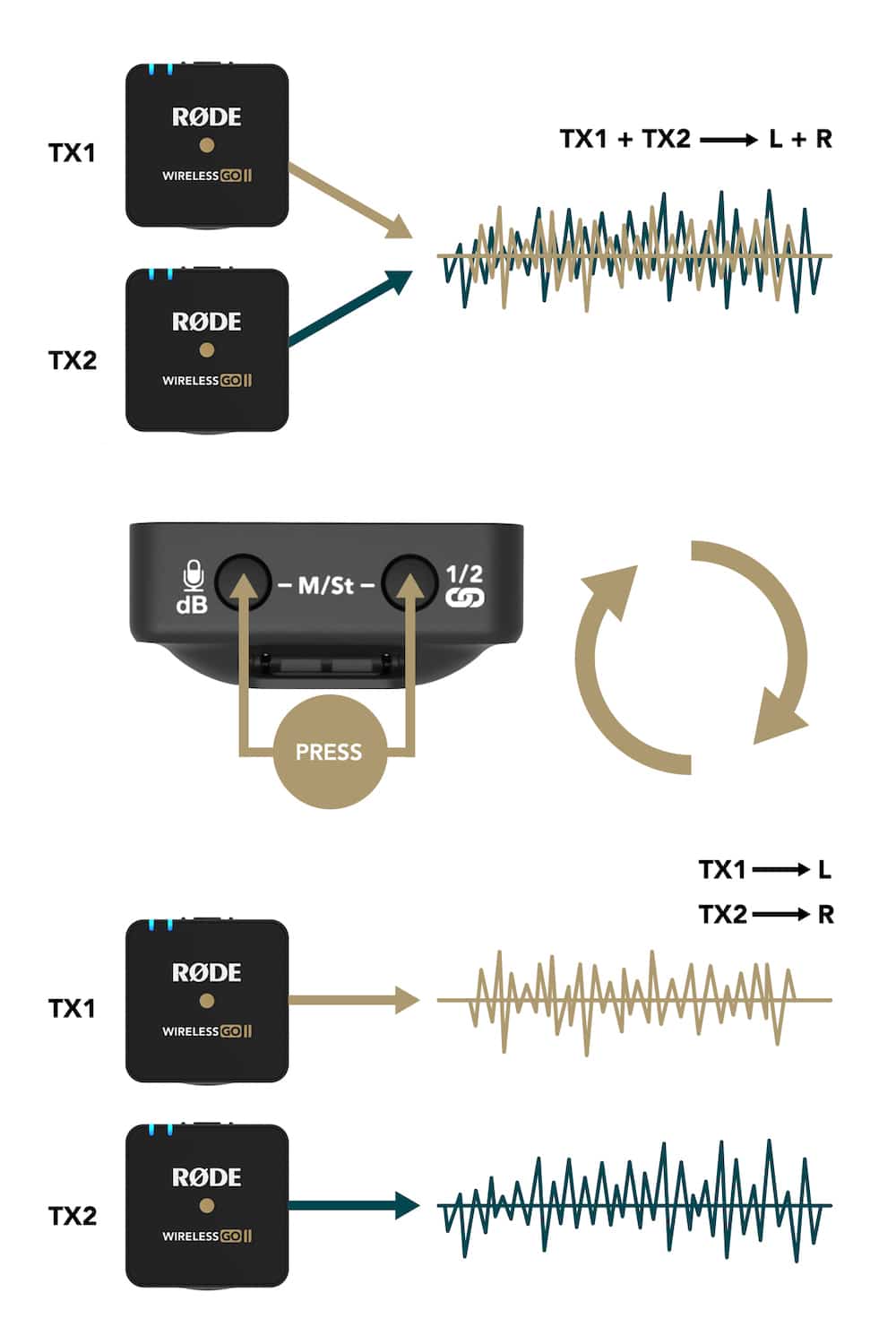 Cette fonctionnalité est directement accessible sur le récepteur (Rx) du Wireless GO II.